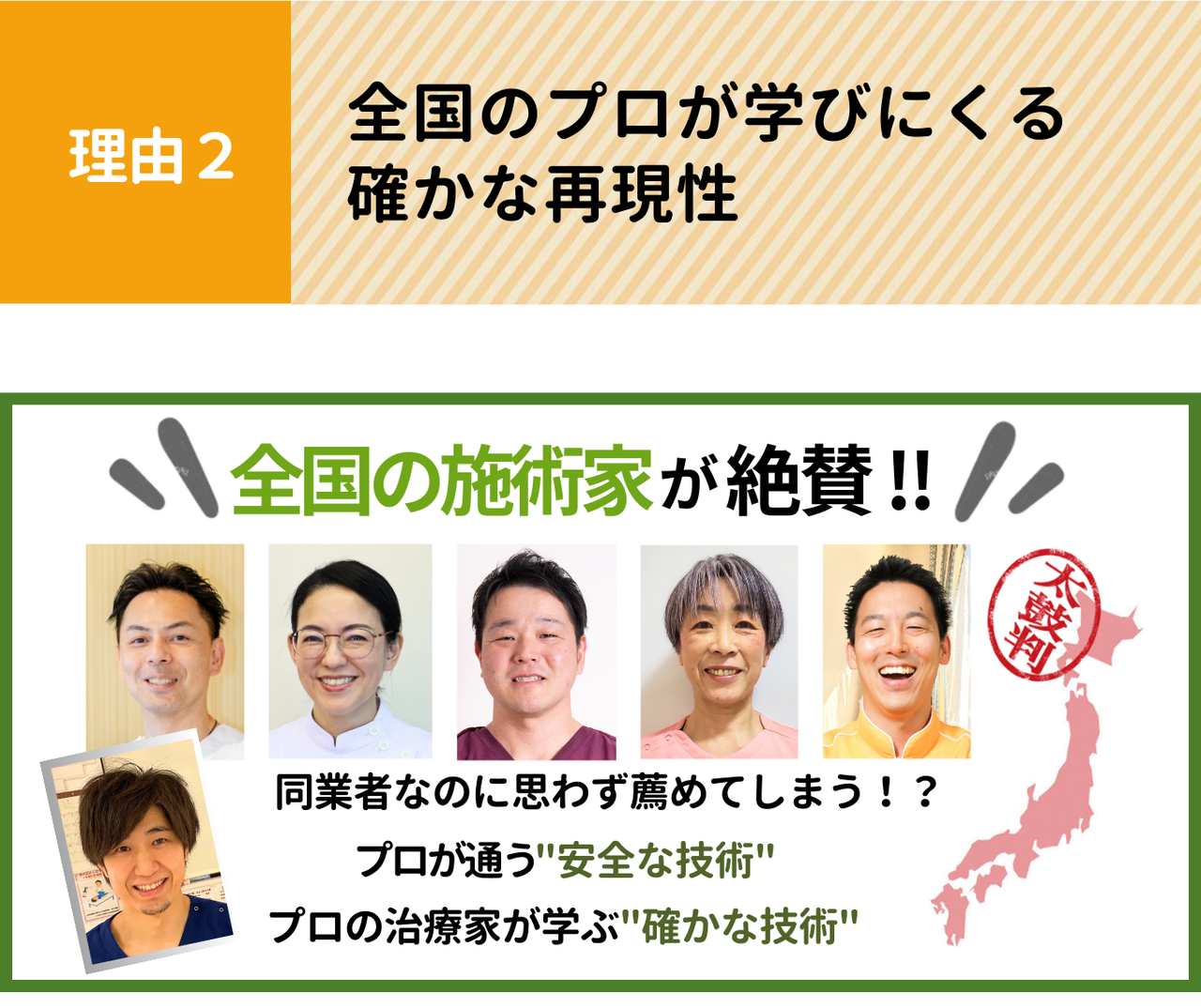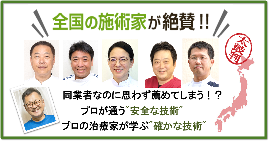 教わった施術を実際に患者さんに行ったとき、「痛みがなくなった」「体が軽い」と喜ばれる姿を見て、改めて学んでよかったと実感しました。また、自身の20年来の頚椎症も驚くほど改善し、今では痛みのない生活を送ることができています。
