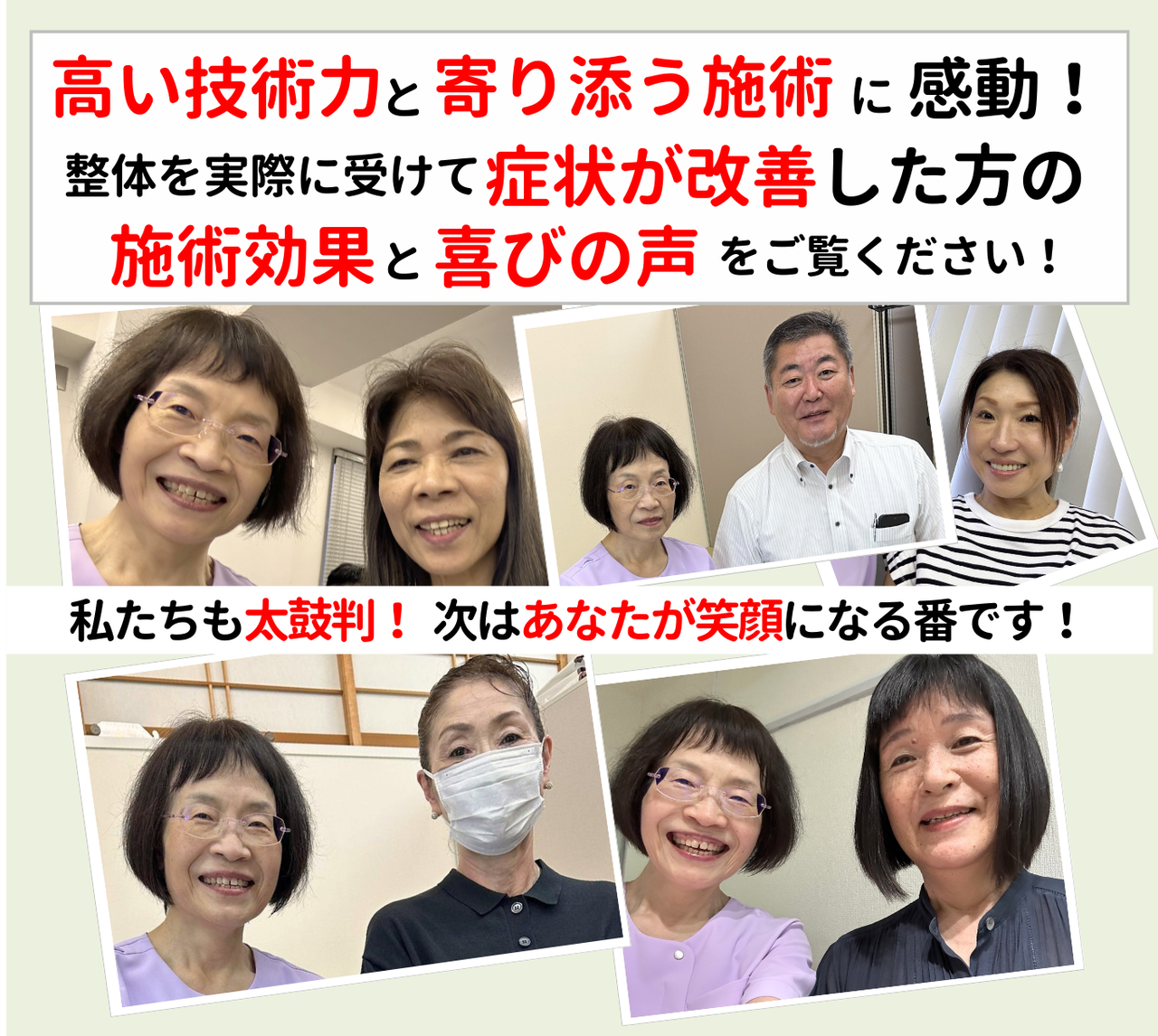 おかげさまで多くの方にご来院いただき、施術後に「楽になった」「また来たい」と笑顔で帰られる姿が、私の励みとなっています。