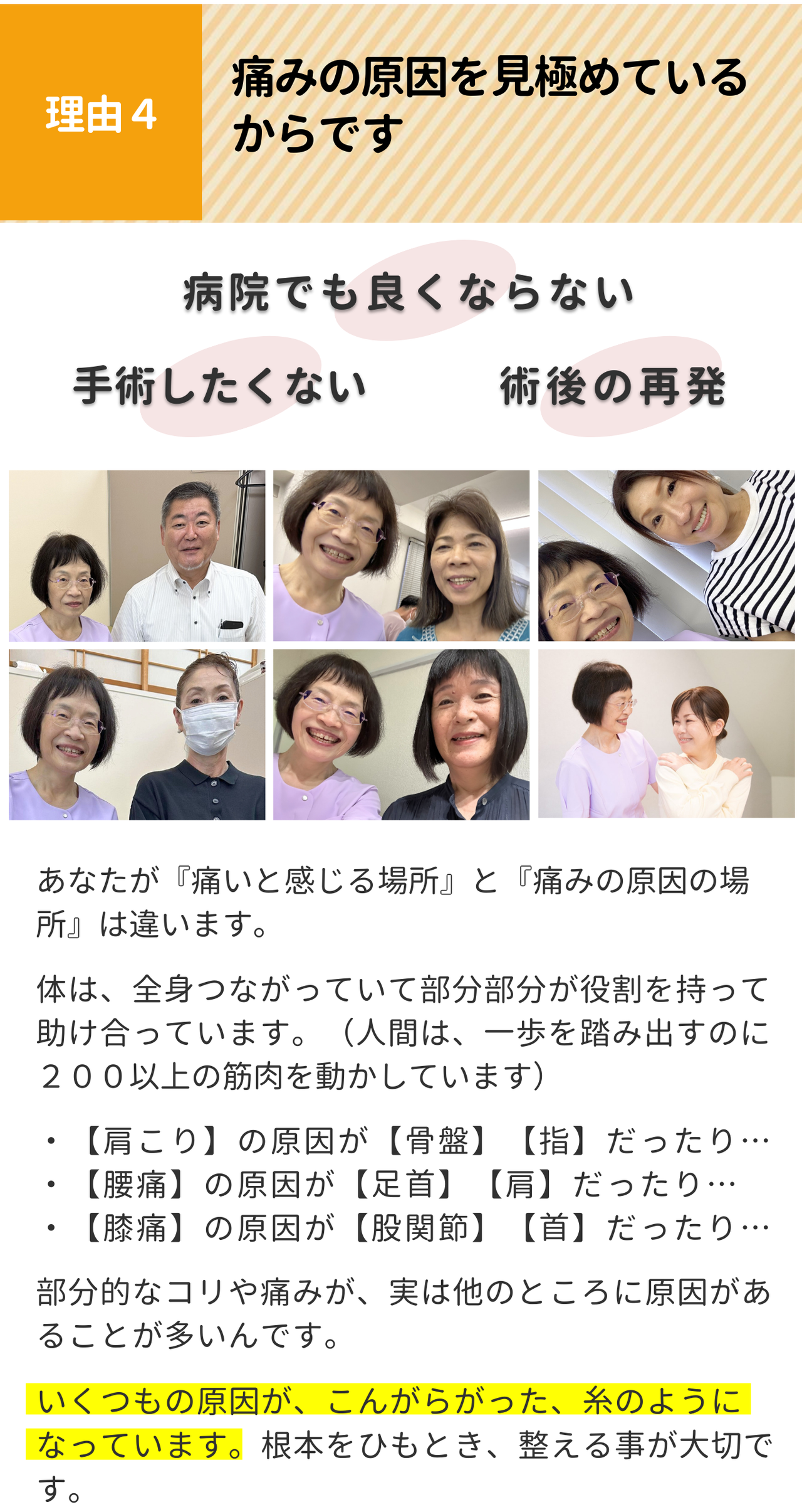 そしてどんな些細なことでも良いので、私に相談してください。きっと体の痛みや不調を根本的に解決する道筋が見つかるはずです。